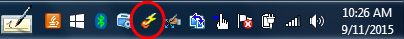 1. On the ToughBook, locate and tap the Wireless Switch Utility in the system tray near the Date/Time. It looks like a red dot with a yellow lightning bolt.